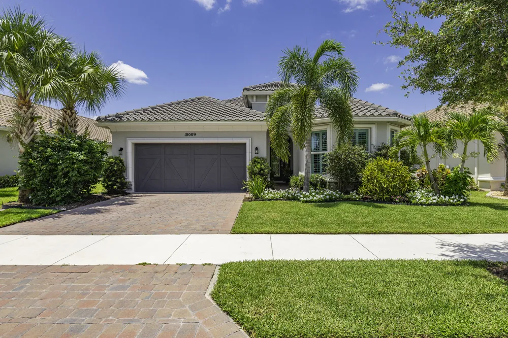 Built 2021 | 2 Bedroom, 2 Bathroom + Den Home in Tradition. This well-maintained home offers a clean, modern layout and excellent condition throughout. Tile flooring with no carpet, plantation shutters, tray ceilings with crown molding, board and batten accents, and custom painted to create a polished, low-maintenance interior. The open-concept kitchen features quartz countertops, stainless steel appliances, gas cooktop with a pot filler, wall oven and microwave, and a large center island ideal for everyday living and entertaining. The primary suite is spacious and well appointed, complemented by a comfortable guest bedroom and a versatile den with custom built-in bookcase and desk. An extended screened lanai enhances indoor-outdoor living and includes two natural gas hookups for future outdoor cooking. The fully fenced, tropical landscaped backyard offers privacy and room for a pool. Additional features include impact windows and doors, epoxy-coated garage flooring, and an outdoor generator hookup. Located in the Tradition area of Port St. Lucie, residents enjoy access to resort-style amenities, a modern clubhouse, and an active lifestyle within a 55+ community. Showing by appointment only.